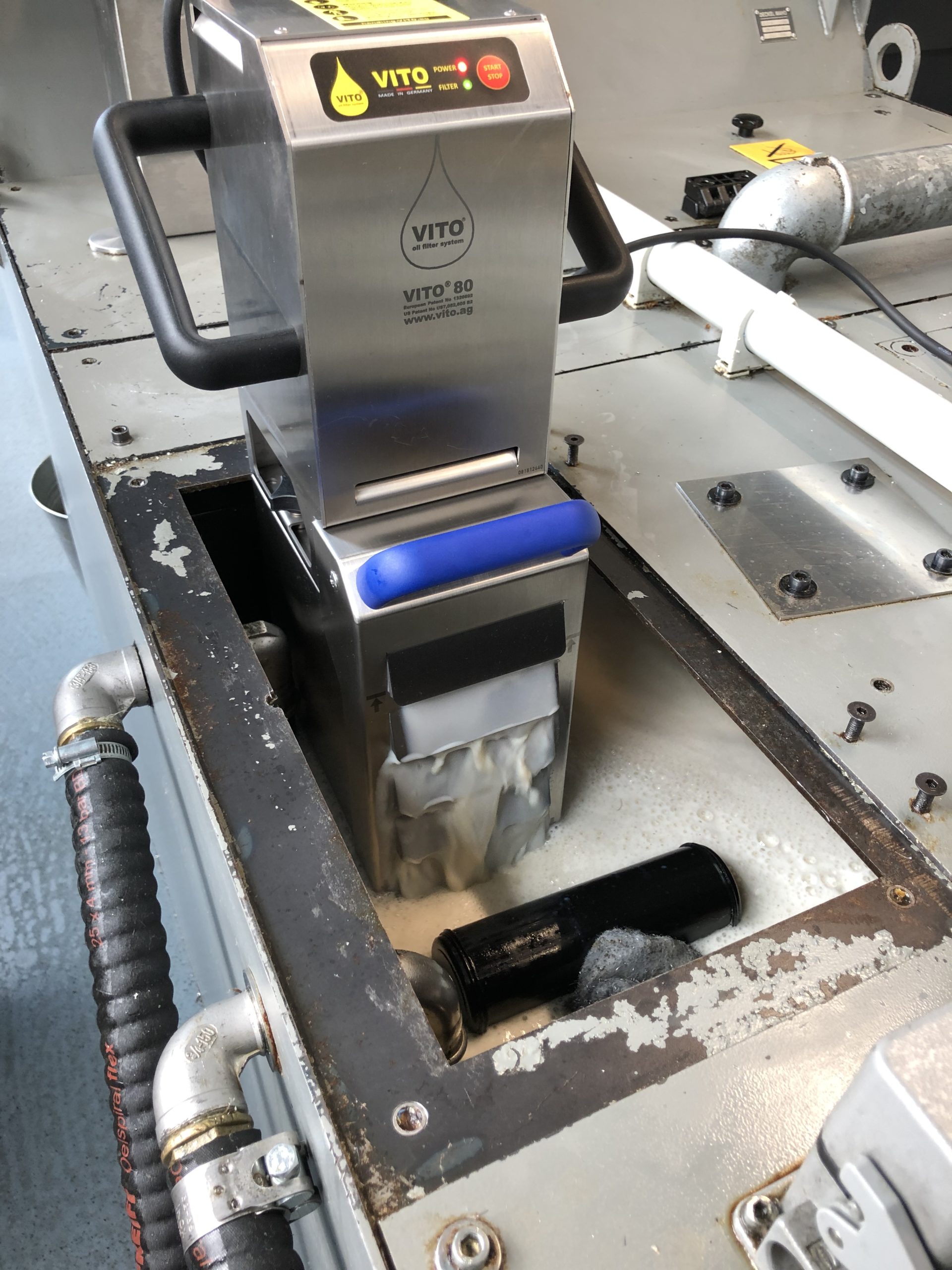 Kasutades tselluloosifiltrit eemaldab VITO patenteeritud surve-pumpamise meetodil filtreerides kõik tükid, laastud ja tahked osad teie emulsioonist, õlist, vesilahusest või pesemisvannist. Lisaks takistab filtreerimisprotsess bakterite ja seente teket. Mehaaniline mikrofiltreerimine võtab vaid paar minutit.